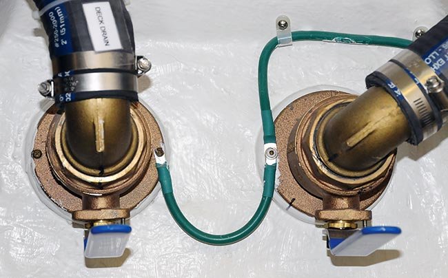 These seacocks are correctly connected to the grounding circuit on this boat. (Photo: Steve D'Antonio)